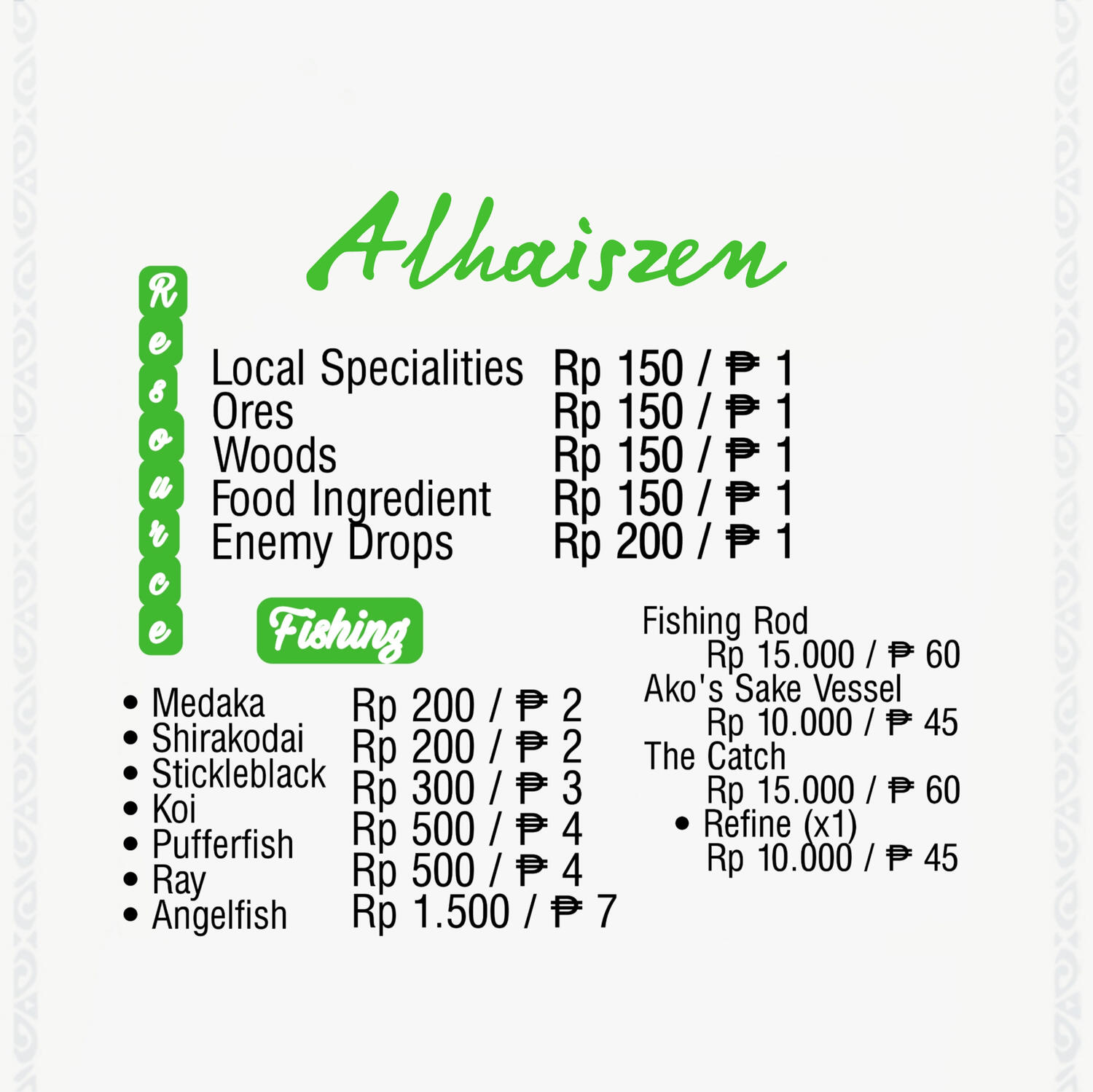 Lv 80-90 | Rp 30.000/ ₱ 130 | Rp 25.000/ ₱ 95 | - |